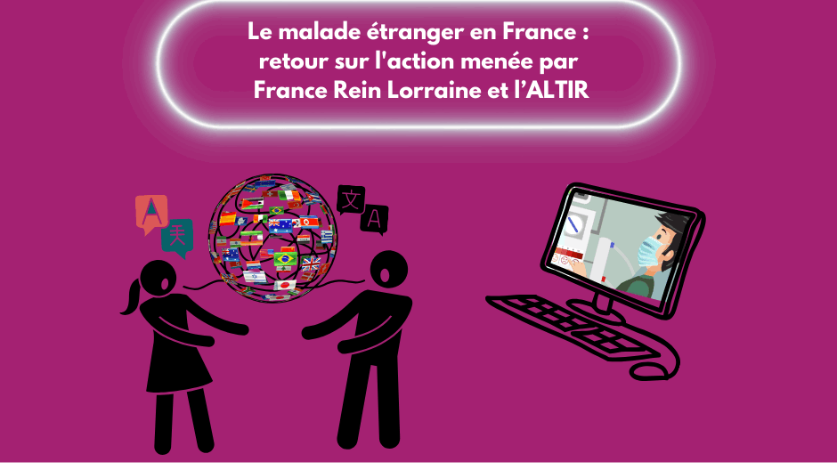 France Rein Lorraine, dont vous pourrez très prochainement retrouver le portrait en vidéo sur notre site internet, œuvre par ses actions à améliorer la qualité de vie des personnes concernées par une maladie rénale. Dans le cadre de leur participation à la Commission Des Usagers de l’ALTIR (Association Lorraine Traitement Insuffisance Rénale), les représentants des Usagers de France Rein ont pu s’emparer de la problématique des personnes insuffisantes rénales allophones et la travailler dans le projet des usagers de l’établissement.
