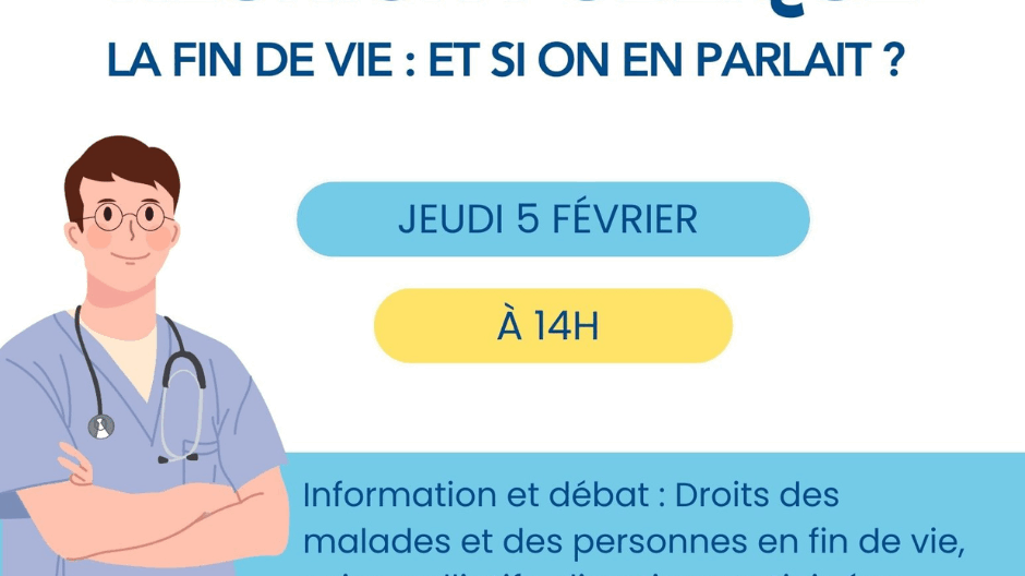 L’Association pour le Droit de Mourir dans la Dignité de la Marne (ADMD 51) organise une réunion publique le jeudi 5 février à 14h, dédiée à la fin de vie. Ce temps d’information et d’échanges permettra d’aborder les droits des personnes en fin de vie, les soins palliatifs, les directives anticipées ou encore le rôle des personnes de confiance. Un rendez vous ouvert à toutes et tous pour mieux comprendre les enjeux et s’informer sur les ressources disponibles.