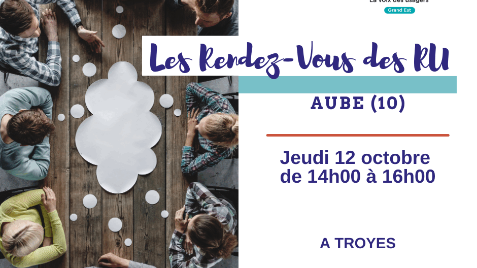 Que vous soyez représentant des usagers (RU) en Commission des Usagers dans un établissement de santé ou dans une autre instance de démocratie sanitaire (CCI, CTS, CRSA, etc.), France Assos Santé Grand-Est vous invite à venir échanger et partager votre pratique et votre expérience avec d’autres RU du département au cours d’un de nos Rendez-Vous des RU.
