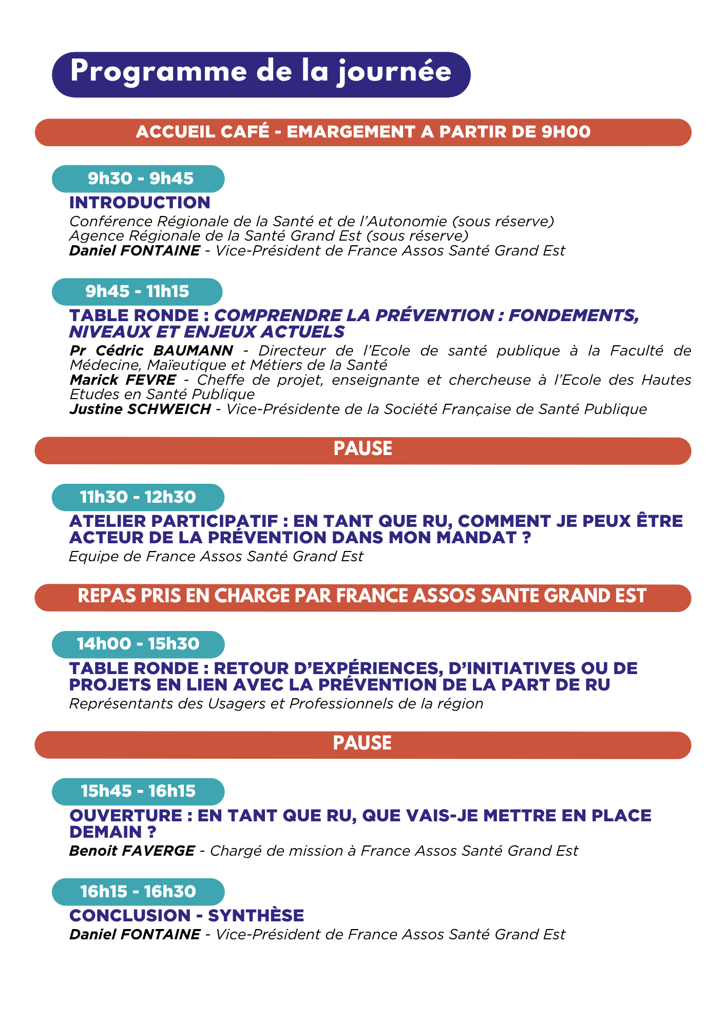 Le repas du midi est prévu pour les personnes participants à l’ensemble de la journée et pris en charge par France Assos Santé Grand Est.