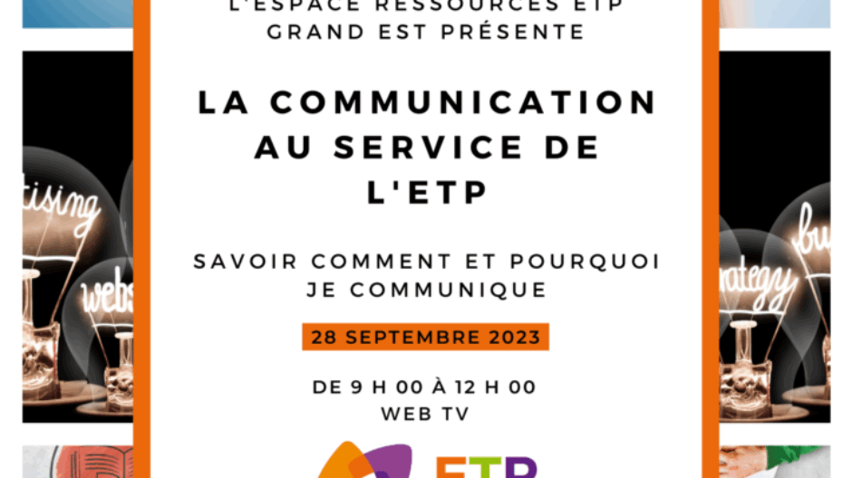 Cette année, les intervenants approfondiront la thématique de « La communication au service de l’ETP – Savoir comment et pourquoi je communique ». L’ERETP Grand Est a le plaisir de vous convier le jeudi 28 septembre 2023 de 9h à 12h, à son plus grand évènement de l’année.