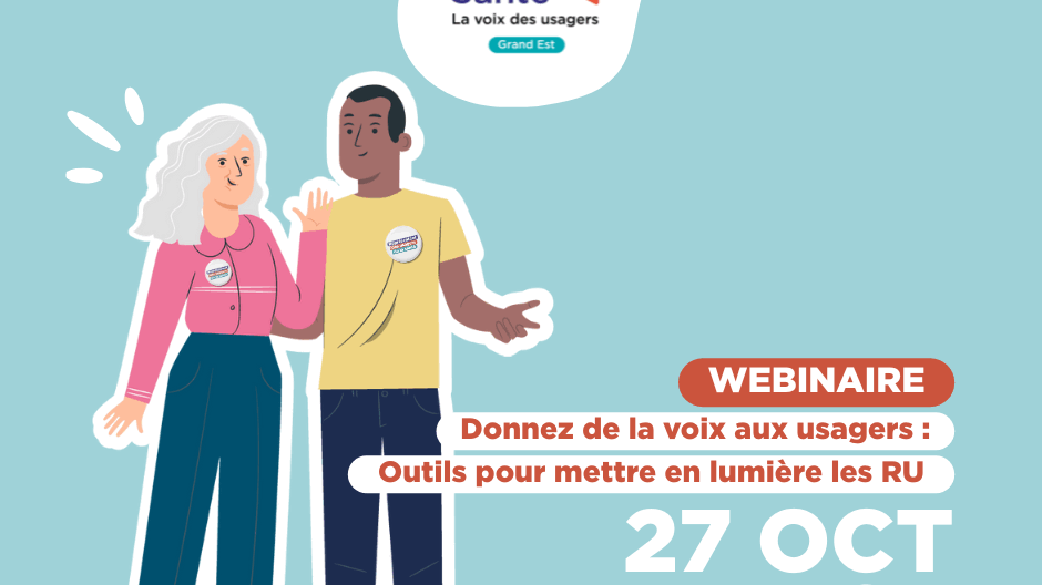 France Assos Santé Grand Est organise un webinaire intitulé « Donnez de la voix aux usagers : Outils pour mettre en lumière les RU ! » et ayant pour objectif de présenter des ressources afin de valoriser les représentants des usagers (RU) dans les établissements de santé. Ce rendez-vous, qui se déroulera le 27 octobre de 14h à 16h, s’adresse à la fois aux RU et aux professionnels impliqués dans les Commissions des Usagers (CDU).